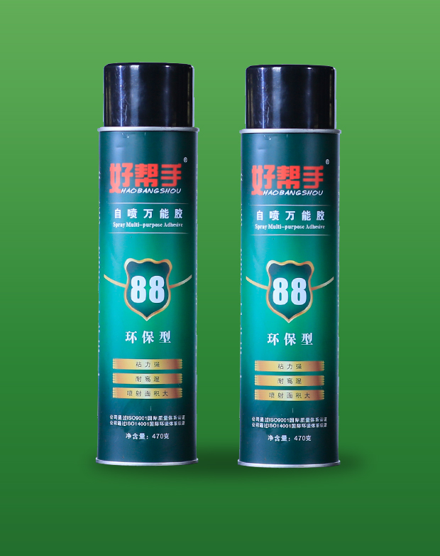 本产品经特殊工艺加工研制而成,产品具有低味环保、方便快捷、粘力强劲、喷胶颗粒细匀、喷涂覆盖面积大等特点,环保指标经SGS检测,符合欧盟REACH标准,优于国家GB18583- -2008环保要求,适合工程、工厂、医院、公司及家庭使用。